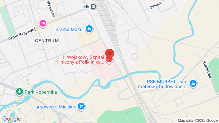 1 Wojskowy Szpital Kliniczny z Polikliniką SPZOZ w Lublinie – Filia w Ełku to placówka znajdująca się w Ełku, oferująca usługi medyczne z zakresu pierwszej wizyty u onkologa, rezonansu magnetycznego oraz tomografii komputerowej. Szpital dysponuje udogodnieniami, takimi jak toaleta, podjazd oraz winda, co zapewnia wygodny dostęp dla pacjentów. Placówka jest przystosowana do świadczenia usług zdrowotnych dla dzieci.