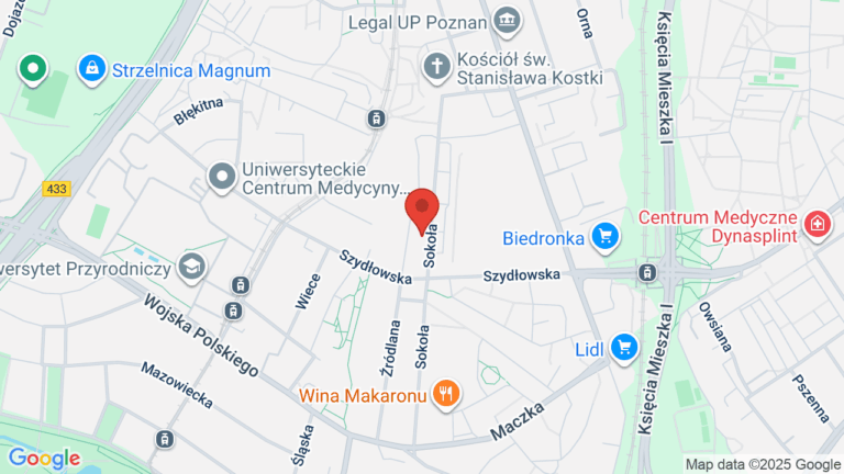 Centrum Medyczne s.c. znajduje się w Poznaniu przy ulicy Sokoła 38. Placówka specjalizuje się w świadczeniu usług związanych z pierwszą wizytą u onkologa. Oferuje również szereg udogodnień, w tym toaletę, parking oraz podjazd, co zwiększa komfort pacjentów.
