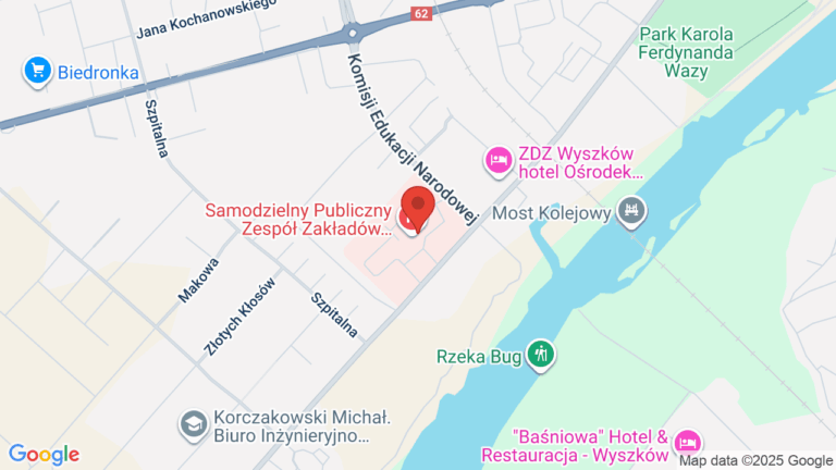 Samodzielny Publiczny Zespół Zakładów Opieki Zdrowotnej z siedzibą w Wyszkowie oferuje usługi medyczne, w tym pierwszą wizytę u onkologa oraz tomografię komputerową. Placówka zapewnia udogodnienia, takie jak toaleta, podjazd oraz winda, co zwiększa komfort pacjentów.