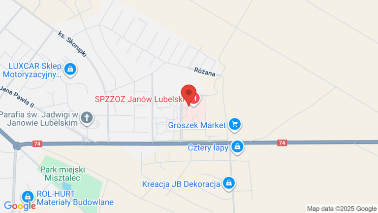 SPZZOZ Janów Lubelski to placówka zdrowia znajdująca się w Janowie Lubelskim. Oferuje usługi w zakresie rezonansu magnetycznego oraz tomografii komputerowej, zapewniając profesjonalną diagnostykę. Placówka dysponuje udogodnieniami, takimi jak toaleta, parking, podjazd oraz winda, co sprzyja komfortowi pacjentów.
