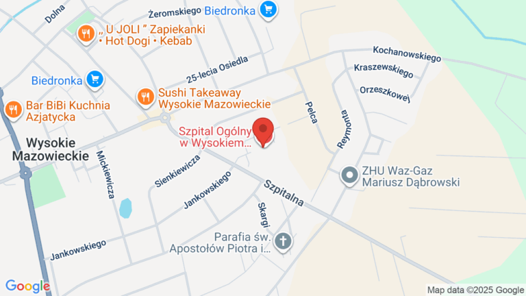Szpital Ogólny w Wysokiem Mazowieckiem oferuje badania diagnostyczne takie jak rezonans magnetyczny oraz tomografia komputerowa. Placówka zapewnia dogodne udogodnienia, w tym windę oraz podjazd, co ułatwia dostęp do usług. Szpital znajduje się przy ulicy Szpitalnej 5 i jest przystosowany do świadczenia usług medycznych dla dzieci.