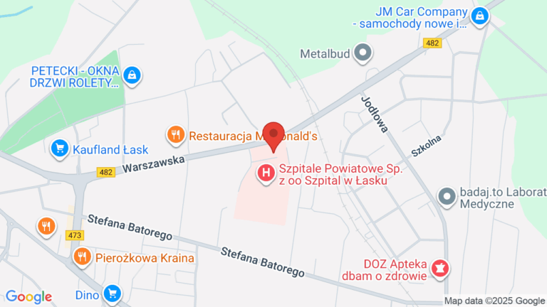 Szpital Powiatowy w Łasku oferuje usługi medyczne, w tym pierwszą wizytę u onkologa oraz tomografię komputerową. Placówka dysponuje udogodnieniami takimi jak toaleta, parking, podjazd oraz winda, co zapewnia komfort pacjentów.