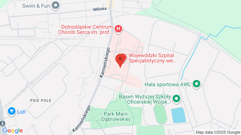 Wojewódzki Szpital Specjalistyczny we Wrocławiu oferuje szeroki zakres usług medycznych, w tym pierwszą wizytę u onkologa, rezonans magnetyczny oraz tomografię komputerową. Placówka jest dostosowana do potrzeb pacjentów, posiadając udogodnienia takie jak podjazd i winda. Znajduje się przy ulicy Kamieńskiego 73A w Wrocławiu.